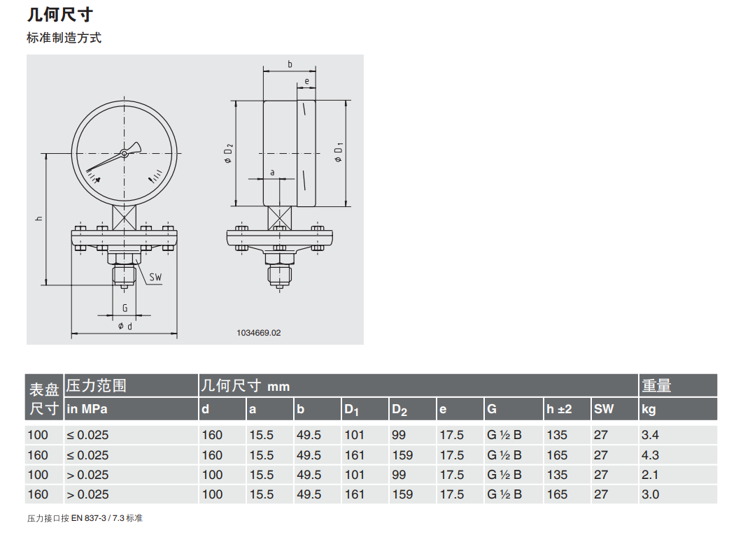 膜片式壓力表的生產(chǎn)符合EN 837-3標準。堅固型外殼設(shè)計適用于機械制造、設(shè)備建造和水處理行業(yè)。